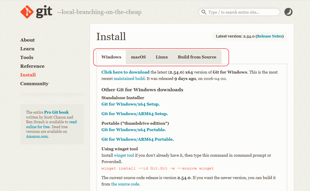 Git:访问 Git 官网,下载安装包